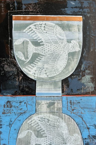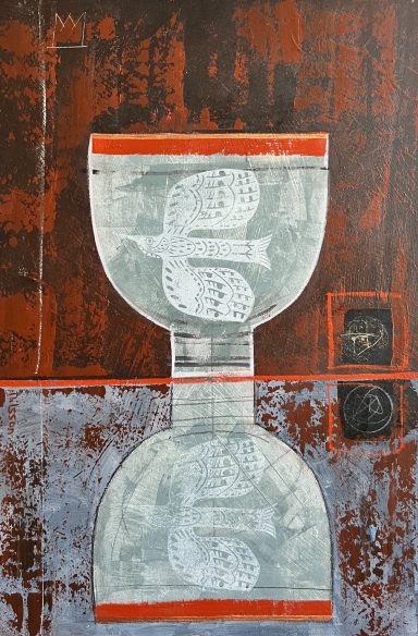 I used to paint exclusively, with elements of print added. Then I focused almost soley on lino print. Now I use the two together. Some of the paintings featured have already sold, others are available to buy from galleries. See the events and galleries page for further information on these.