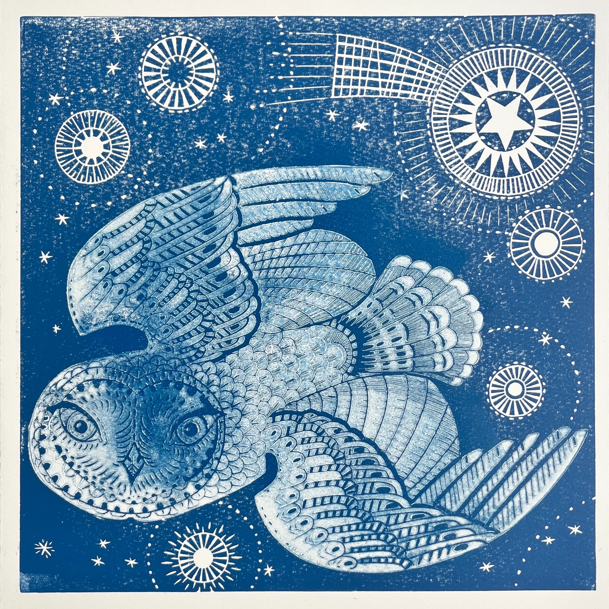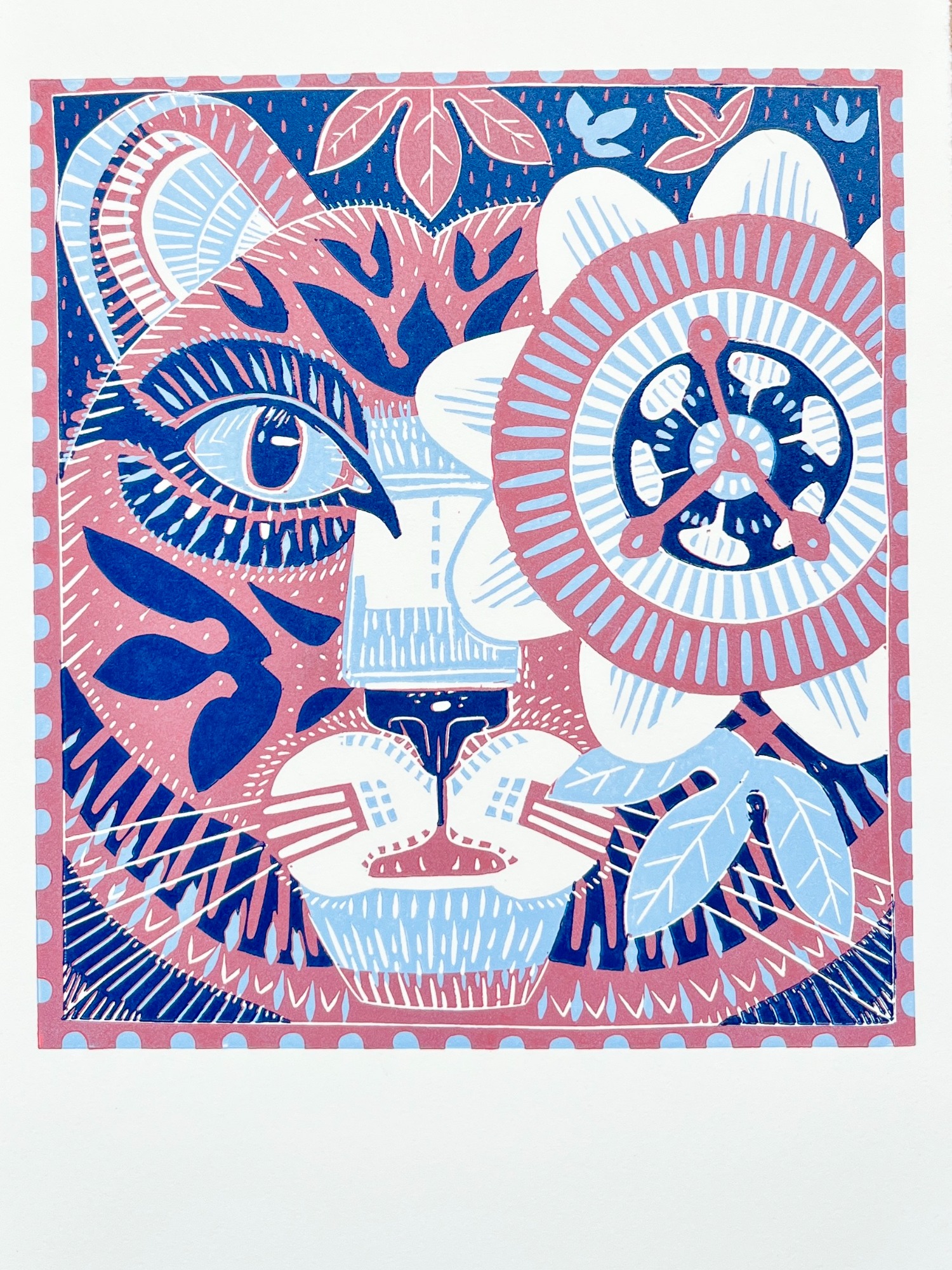 I design, carve and press all my prints in my home studio in Edinburgh. I use Cranfield Caligo safewash inks and Somerset or Stonehenge printmaking paper. My carving tools are Pfeil, and I press with a Woodzilla lever press or my trusty wooden spoon. My inspiration comes from fables and myths, my love of birds and nature, reading and travel.